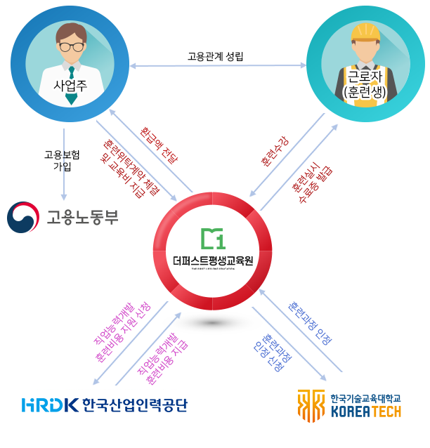 더 퍼스트 평생교육원의 온라인 교육 과정(일부 과정제외)은사업주 직업능력개발훈련 과정으로 지정 받아 기업의 임직원들이 해당과정을 수료하면 고용보험을 환급 받을 수 있습니다.