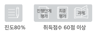 총 100점 만점 기준으로 진도율 80%이상(필수),