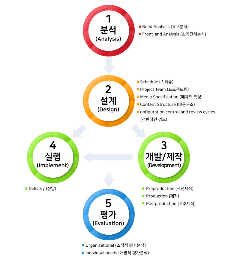 본 교육원은 국내에 많은 프로젝트에서 적용, 검증된 ADDIE 방법론의 장점을 최대한 반영한 프로세스를 수립하여 과정 개발을 진행하고